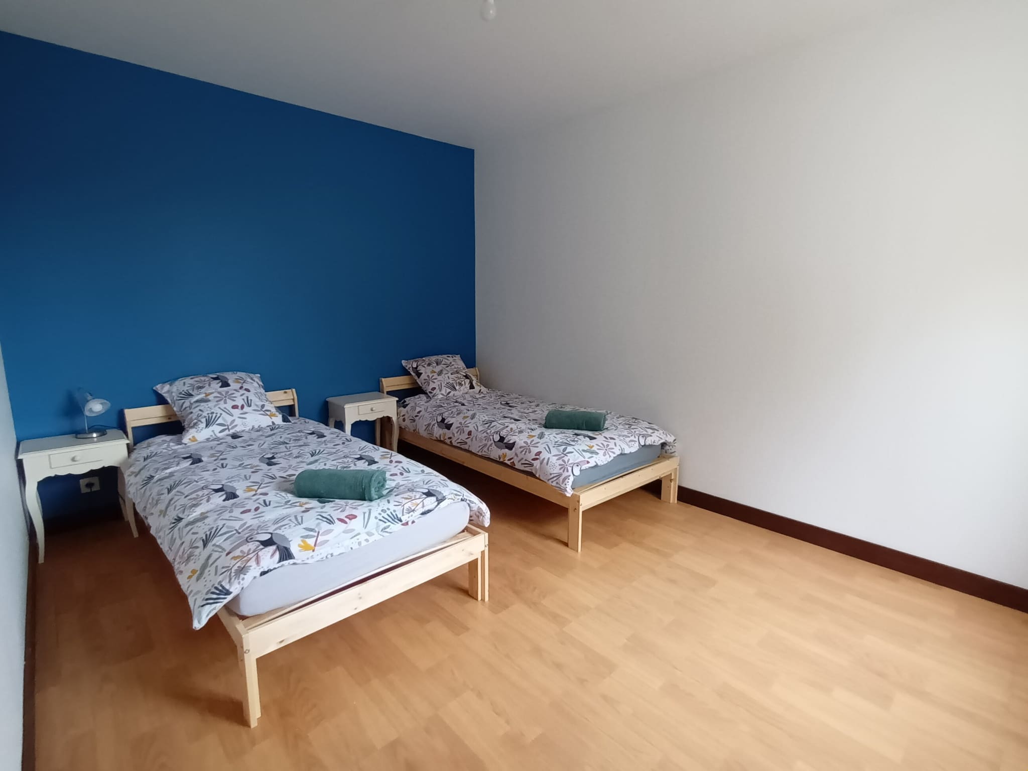 The accommodation has a double bed (160x200) in the first bedroom, and 2 single beds in the second bedroom. A bathroom with bathtub and vanity unit. The toilets are separate. Bed linen and towels provided.