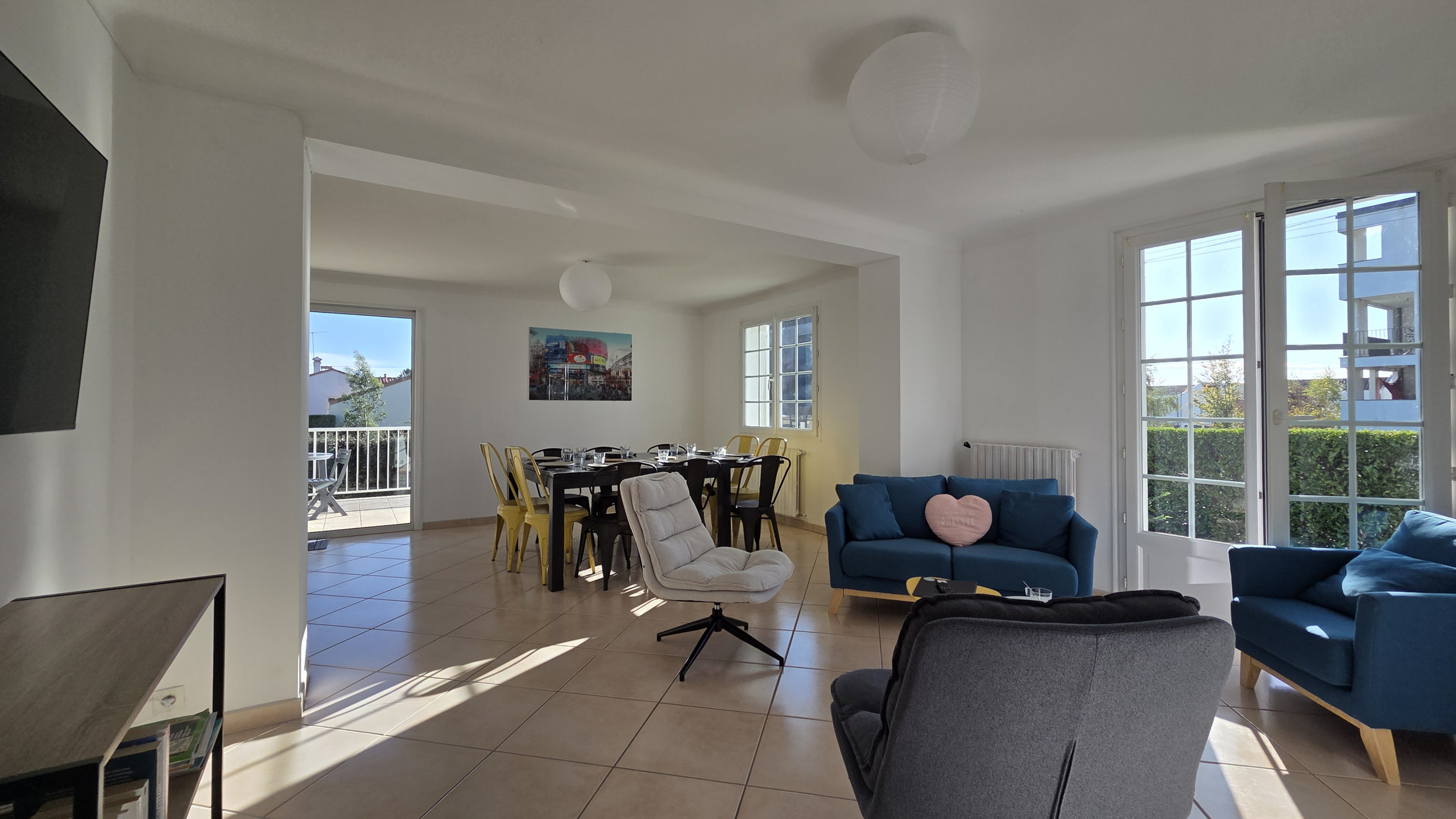 This large, single-story house is perfect for families and business travelers alike. It can accommodate groups of up to 10 people in its 5 bedrooms. The house has 3 double beds (160x200 cm) and 4 single beds. Both bathrooms have a shower and a vanity. Bed linen and towels are provided.