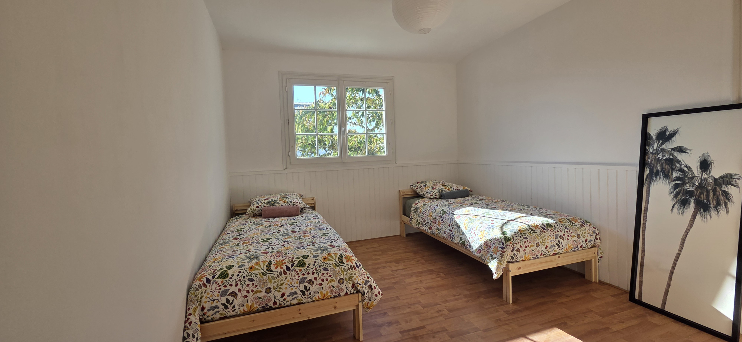 Elle dispose de jardin, mobilier de jardin, clôture, 40 m² de terrasse, lave-linge, barbecue, fer à repasser, accès internet (wifi), sèche-cheveux, zone pour les enfants, chaudière au gaz individuelle, parking extérieur, 1 Télévision.